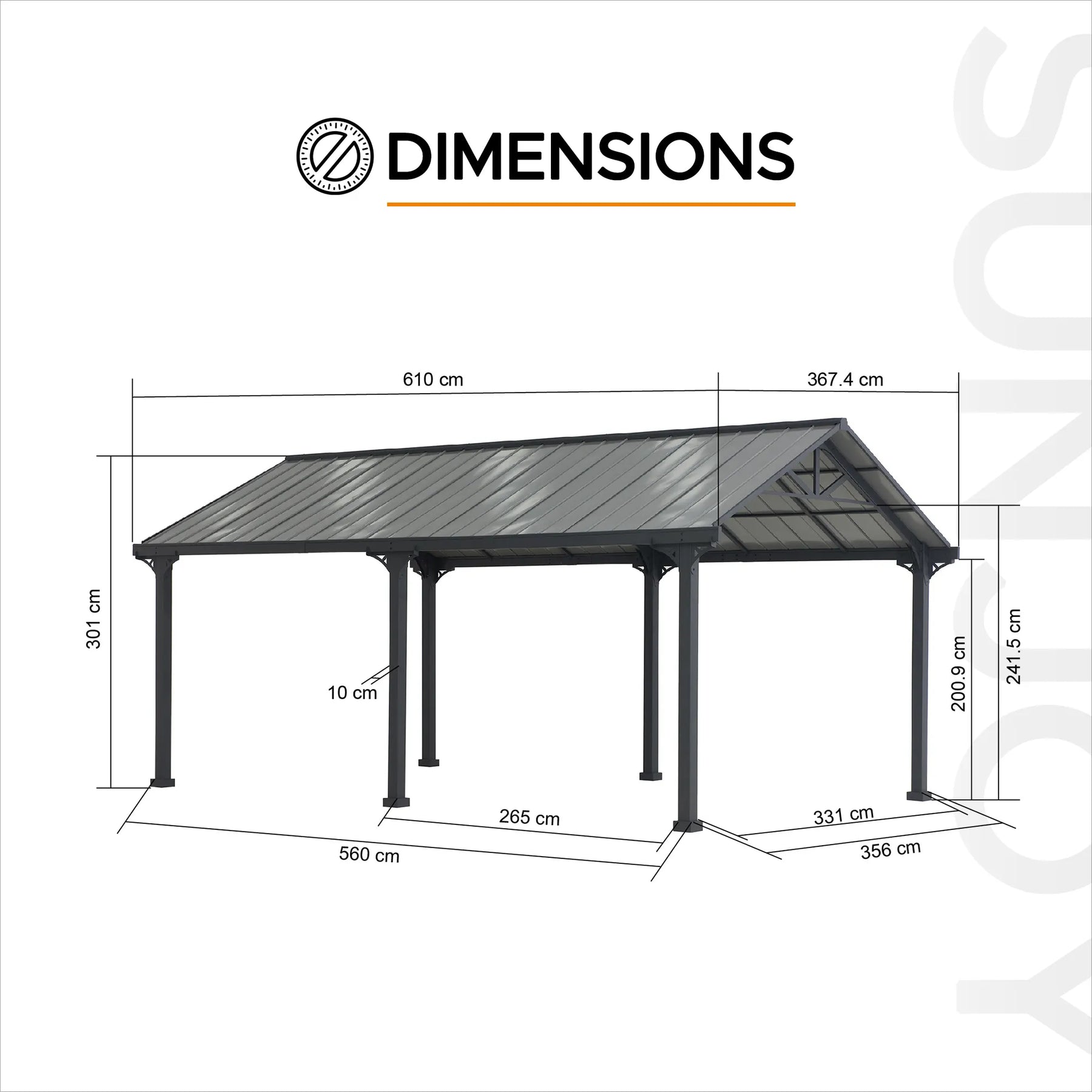 Crafted as a heavy-duty steel shelter, it features rust-resistant powder-coated steel framing that stands firm against the elements.Need versatility? Beyond vehicle protection, its generous size and sturdy build make it the perfect outdoor gathering spot—use it as a gazebo for entertaining, turning your backyard into a weather-safe haven. And with a sleek design that complements any home architecture, it adds functional style without sacrificing strength. boat, trailers, and more with the EIGER Carport—built to dominate harsh weather while maximizing space. At its core, this spacious 610cm x 367cm structure delivers ample room for large vehicles or equipment, ensuring even bulky items stay protected from sun, hail, rain, and snow.