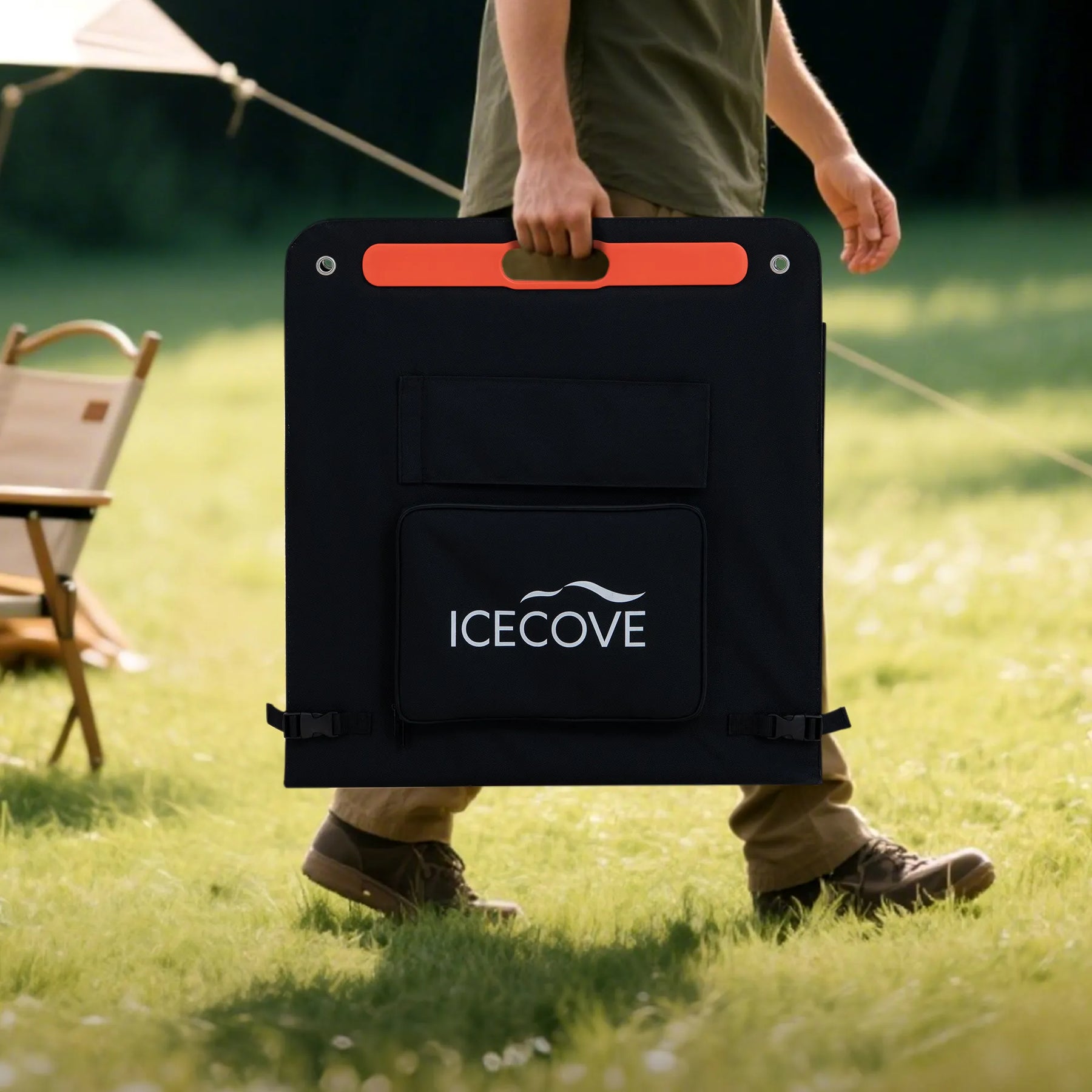 Power up your outdoor adventures with the Sunjoy 226W Portable Folding Solar Panel. Wherever there is sunlight, you can conveniently charge your IceCove Air Conditioner and enjoy the freedom of power on the go. Its compact and lightweight design, complete with an ergonomic carrying handle, ensures easy transport and quick setup for efficient charging. Crafted from high-quality materials, this solar panel is built to withstand the toughest outdoor conditions, guaranteeing durability and longevity. Maximize your sun exposure with the 4 adjustable kickstands, ensuring optimal charging efficiency wherever you are. The panel easily folds up for convenient carrying, is secured with a magnetic closure, and equipped with an ergonomic handle. Despite its power, it weighs less than 10KG, ensuring portability without sacrificing performance. Invest in this portable and powerful solar panel today and enjoy the limitless energy of the sun! Compatible with the IceCove portable air conditioner battery for maximum versatility.